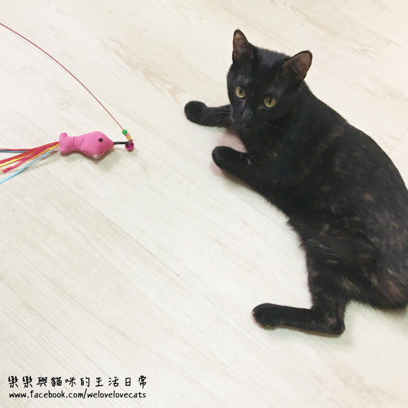 然後看到黑糖糕不玩逗貓棒,就跑去把玩了一下XD